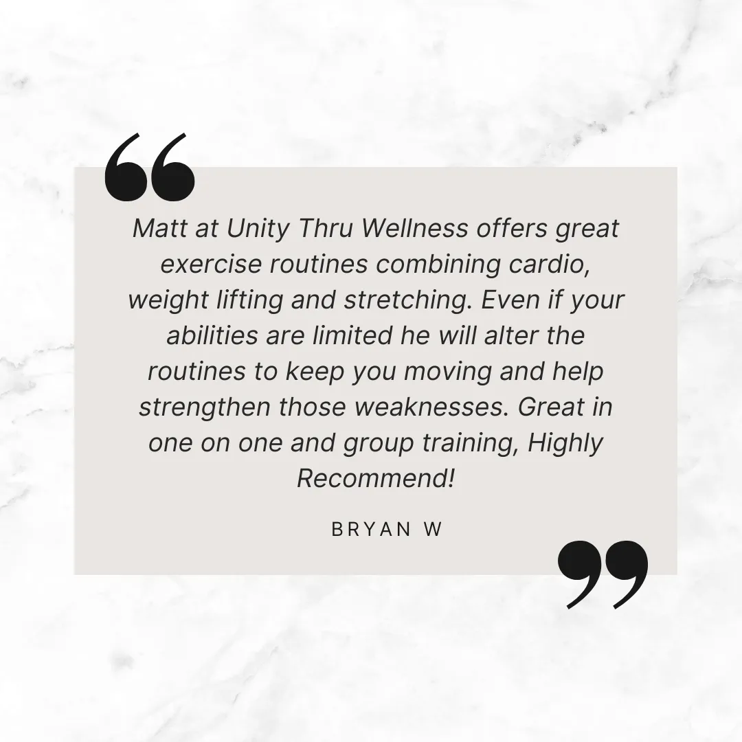 Unity Thru Wellness provides small group training groups of up to 4 people. In-person and in-home training is available for group training sessions.